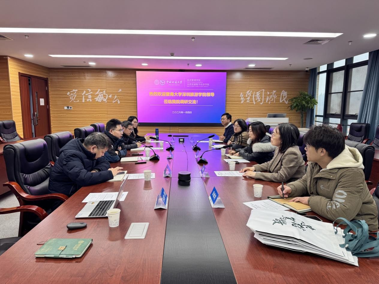 (通讯员:努尔夏提·居勒提 李琳)1月4日下午,暨南大学深圳旅游学院院长文吉教授一行来访伟德bv国际体育调研交流。院长於世为教授主持座谈,双方围绕数字经济背景下的学科建设、人才培养及合作办学等议题展开深入探讨。