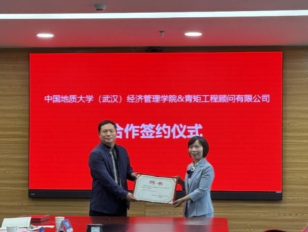 会议由管理科学与工程系副主任丁丽萍主持。 郭海湘副院长在致辞中表示,学院高度重视产教融合与实践育人,此次与青矩工程顾问有限公司合作,是工程管理专业对接行业需求、提升人才培养质量的重要举措。青矩工程顾问公司总经理蔡石磊介绍了企业发展情况、行业优势与技术实力,表示将充分发挥企业资源优势,积极支持学院实践教学与学生实习实训,助力学院培养更多符合行业发展需要的专业人才。会议上,双方代表共同签署校企合作实习实践基地协议。