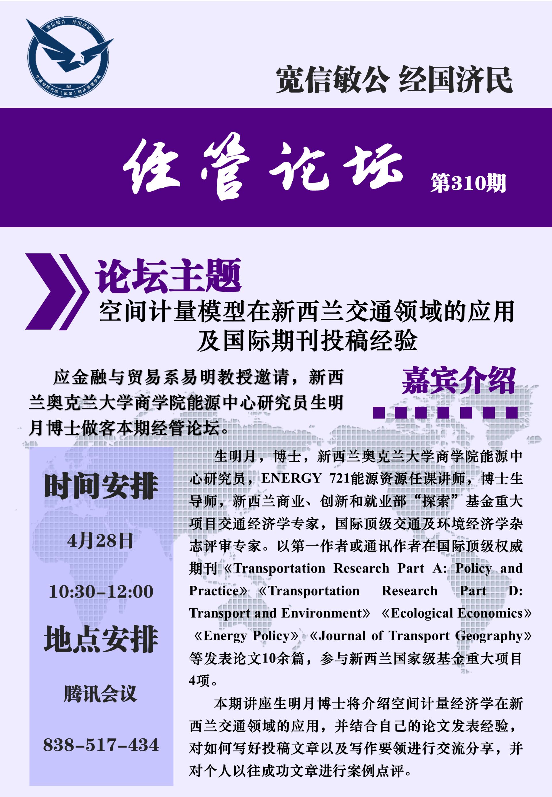 伟德bv国际体育(第310期)空间计量模型在新西兰交通领域的应用及国际期刊投稿经验