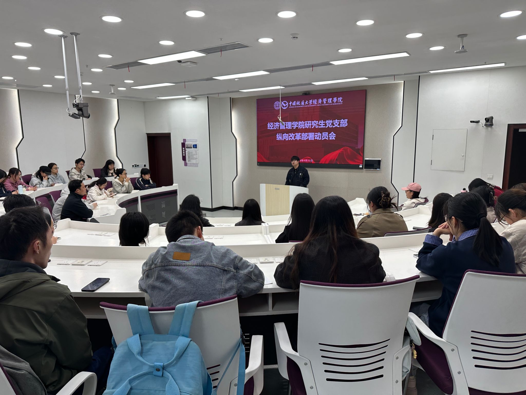 为进一步加强学院研究生党支部建设,提升研究生党支部工作成效,创新基层党建工作模式,4月22日中午,学院在经管楼106召开研究生党支部纵向改革部署动员会。学院相关负责老师及全体研究生党支部委员参加会议。
