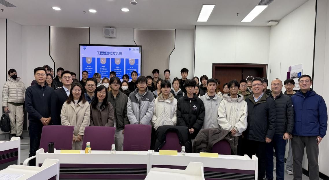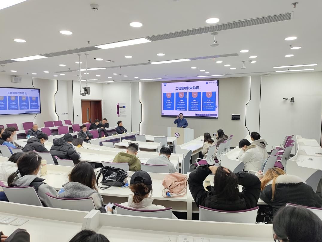 (通讯员:柯小玲 陈禹蒙 )2025年12月25日上午十点,工程管理专业在学院108智慧教室成功举办2025年工程管理校友论坛。论坛由该专业柯小玲老师牵头组织,以“行业前沿与职业成长”为主题,邀请碧桂园集团华中区域项目第一负责人黄学鹏、中建三局基础设施建设投资公司投资运营事业部党支部书记罗翻翻、中建三局新能源投资有限公司智慧充电与虚拟电厂事业部总经理叶德兆、中建三局第一建设工程有限公司产业发展部副经理许森四位优秀校友返校,分享行业趋势与成长经验,为在校生明晰发展方向、把握时代机遇提供指引。管理科学与工程系书记孙涵老师和工程管理专业的老师参加了论坛。